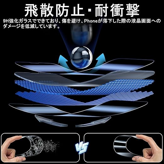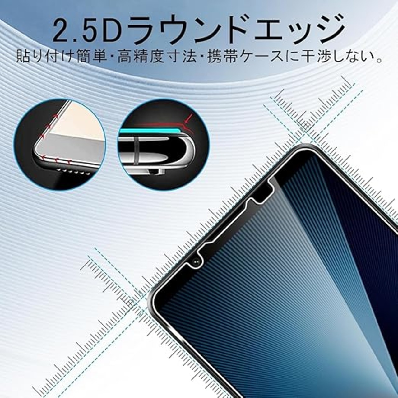 【特徴1】2.5Dラウンドエッジ加工、HD画面、硬度9H、透過率99%、撥油性 疎水性 指紋防止 耐衝撃、気泡ゼロ 貼り付け簡単な保護フィルム です。