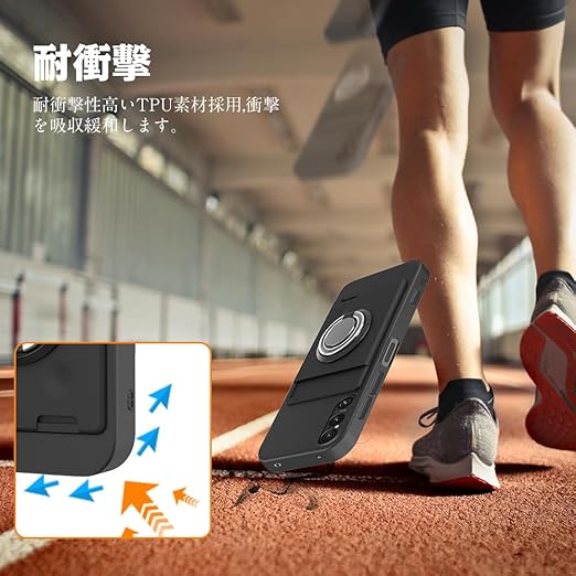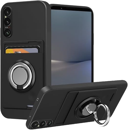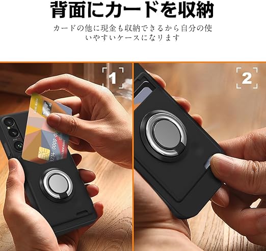 Xperia 1 VI ケース Xperia SO-51E ケース SOG13 リング付き シリコン カード収納 エクスペリア1VI ケース スタンド機能 360°回転リング 耐衝撃 滑り止め 黑 a