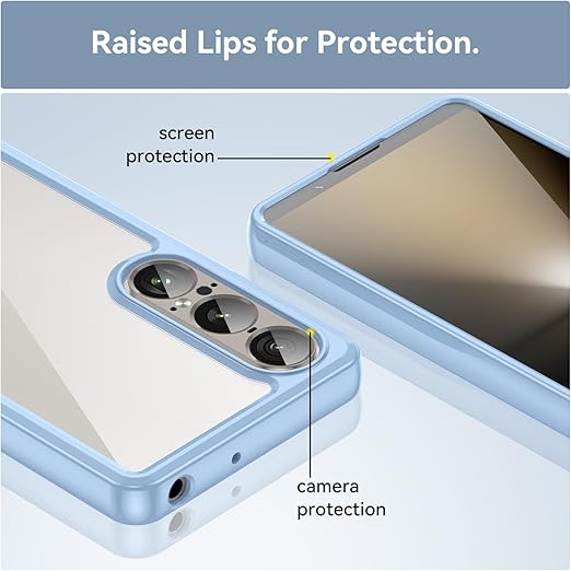 For xperia 1 vii ケース 耐衝撃 全面保護 防汚 耐摩耗カカバー 落下防止 軽量薄型 指紋防止 衝撃吸収 耐久インストール簡単 擦り傷防止 保護カバー (ライトブルー) a