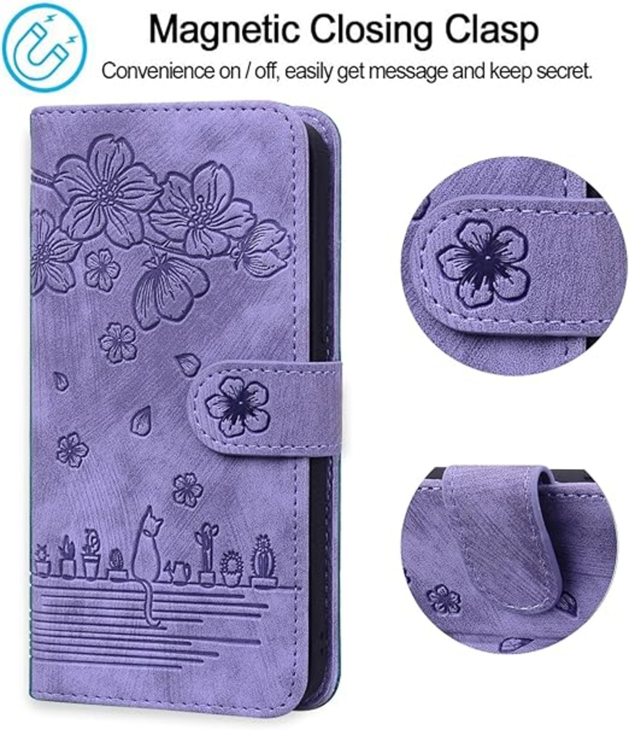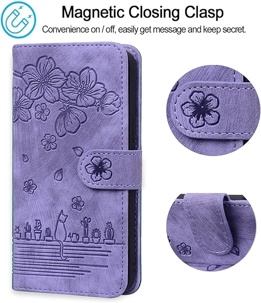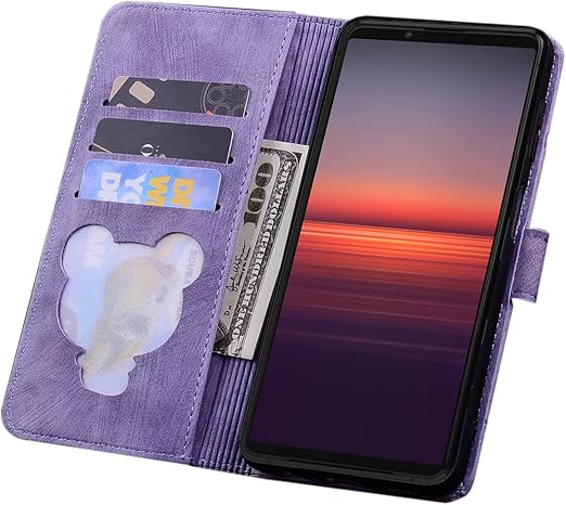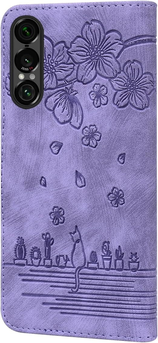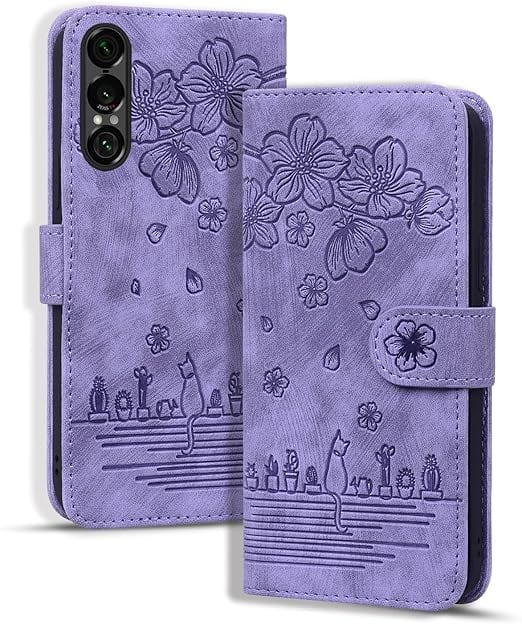 Torske Xperia 1 Vll ケース 手帳型 さくら柄 エクスペリア1VIIケース Xperia1VII 手帳型ケース 油絵デザイン ヴィンテージカラー 快適な質感 財布型 エクスペリア 1vii スマホケース カード収納あり 使う便利性 SO-51F カバー 全面保護 携帯カバー 6.5インチ 紫の a