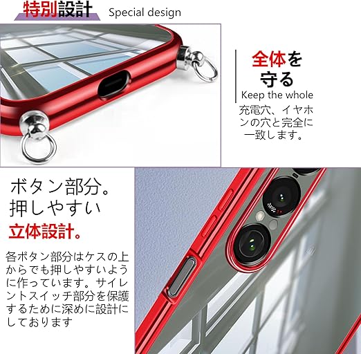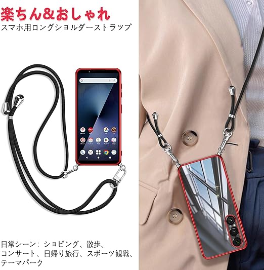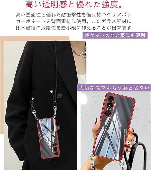 Xperia 1 VII ケース ショルダー クリア 透明 xperia1vii SO-51F SOG15 スマホケース カバー 薄型 TPU 肩掛け 首掛け 斜めかけケース 耐衝撃 シリコン エクスペリア1VII(レッド) a
