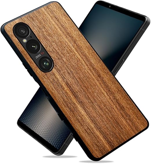 MQman Xperia1vi SO-51E ケース 木製カバー 胡桃の木 原木 素材 エクスペリア天然木 耐衝撃 ソフト クルミ ワイヤレス充電対応 (Xperia 1 VI) a