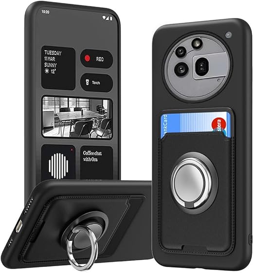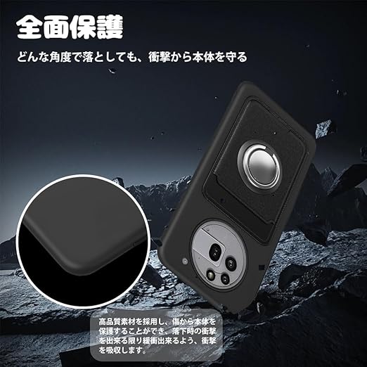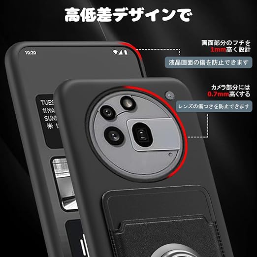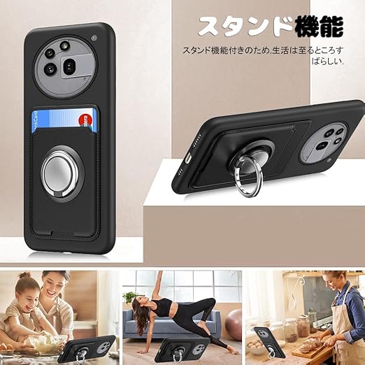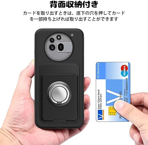 対応 Nothing Phone 3a Pro ケース カード収納 リング付き 保護カバー ナッシングフォン3a Pro スマホケース リング スタンド付き シリコン スタンド機能 マット質感 滑り止め 指紋防止 黑 a