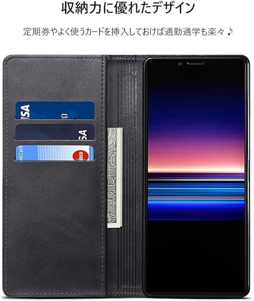 Rssviss Xperia 1 ケース 手帳型 xperia1 カバー 手帳型 エクスペリア1 手帳型ケース SO-03L ケース 手帳 スタンド カード収納 マグネット SOV40 ケース 手帳型 6.5 inch適応 W1 ブラック a