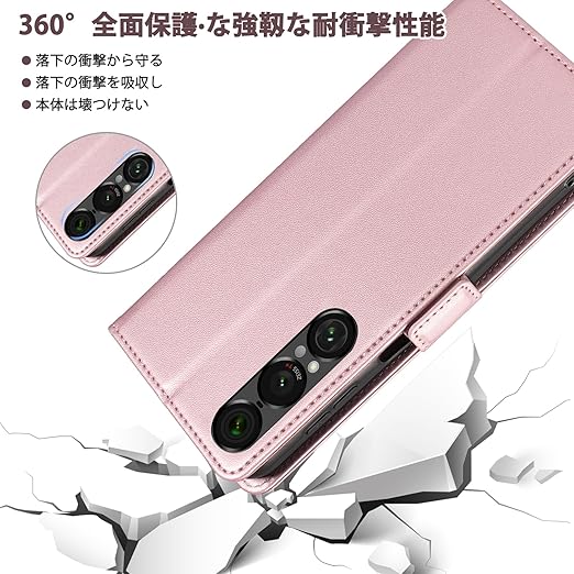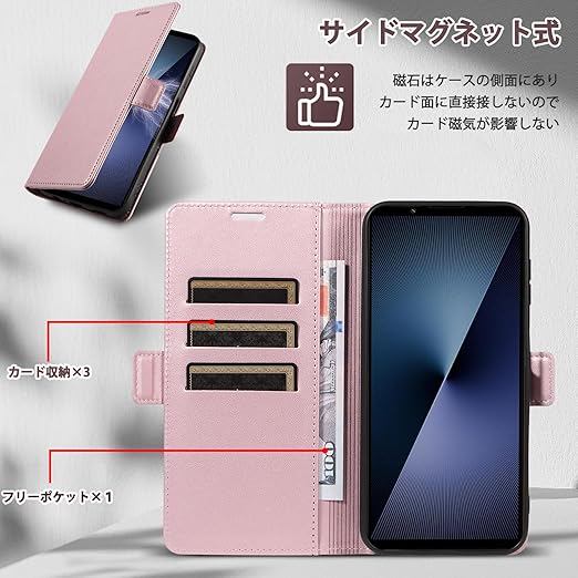 CeiLarv コンパチブル SONY Xperia 1 VII 5G ケース 手帳型 用 マグネット開閉式 スマホケース 財布型 カードポケット付き 携帯カバー ケース 耐衝撃 ビジネス風 スタンド機能 高級PUレザー 全面保護 ソニー Xperia 1 VII Case 用 - ピンク a