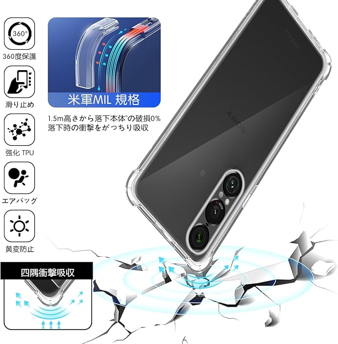 Xperia 1 VII SO-51F / SOG15 / XQ-FS44 専用クリア ソフト シリコン TPUケース 【四隅?化保護 米軍MIL規格 】 対応 エクスペリア1 VII カバー 液晶 スマート Xperia1 VII TPUカバー 保護ケース 【高い透明度 黄変しにくい 超軽量 衝撃防止 落下防止 超薄型 手触り良い 取付簡単 ワイヤレス充電対応】 a