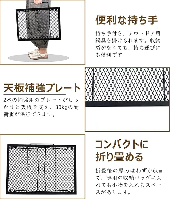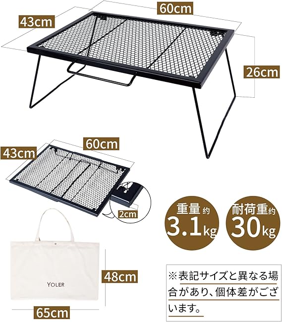 ヨーラー(YOLER) メッシュテーブル 大型焚き火テーブル 折りたたみ式 専用収納ケース付き 60×43×26cm YR-MT007 a