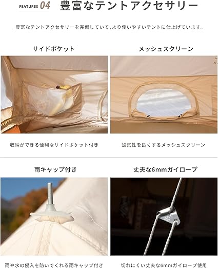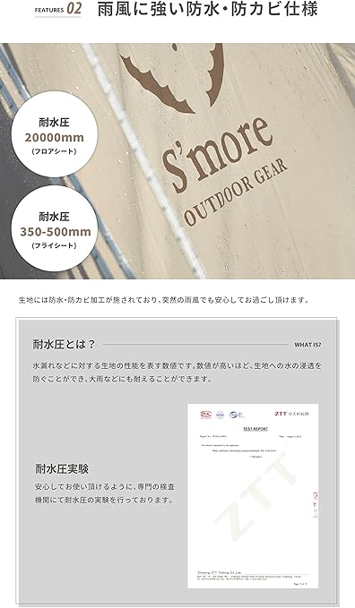S'more (スモア) Hommi テント ポリコットン 小屋型 家型 収納バッグ付き ファミリーテント 2〜3人用 260*210cm キャンプ テント おしゃれ 撥水加工通気性 吸湿性 撥水 難燃 UPF50+ 抗菌 UVカット アウトドア 日除け バーベキュー a