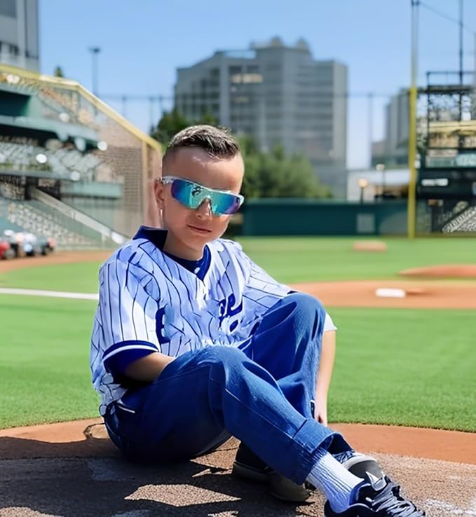 Feisedy キッズ スポーツ サングラス 子供用 偏光 レンズ UVカット TR90超軽量 サングラス ゴルフ ジョギング 野球 バス 釣り 自転車 サイクリング 紫外線カット B2454 b