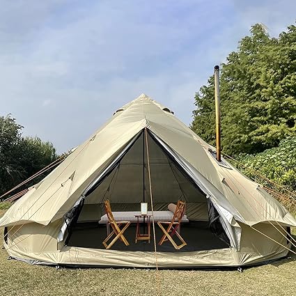 D&R B2【5m大型ベージュベルテント】上部密封DIY煙突穴付き 防水、日焼け止めシルバーコーティング オックスフォード生地 おしゃれ ワンポール大型テント18㎏ 薪ストーブテント 4-6人用ファミリー 四季テント a