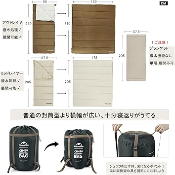 Naturehike シュラフ 寝袋 多層 4シーズン 封筒型 マルチレイヤー 分割して使用可能 -5~13℃ 夏用 冬用 暖かい オールシーズン アウトドア キャンプ 登山 車中泊 山小屋 敷布団 保温 通気 防災 コンパクト 秋 春撥水加工 丸洗い可能 ドライブ旅行 室内 収納袋付き a