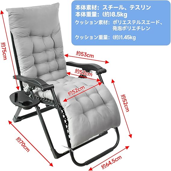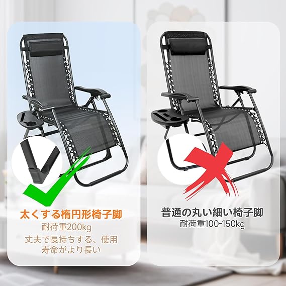 頑丈な鉄製フレームで高い耐久性、三角形の安定性により安全な耐荷重が確保されます。太めの人でも安心してご使用いただける頑丈な幅広インフィニティチェアです