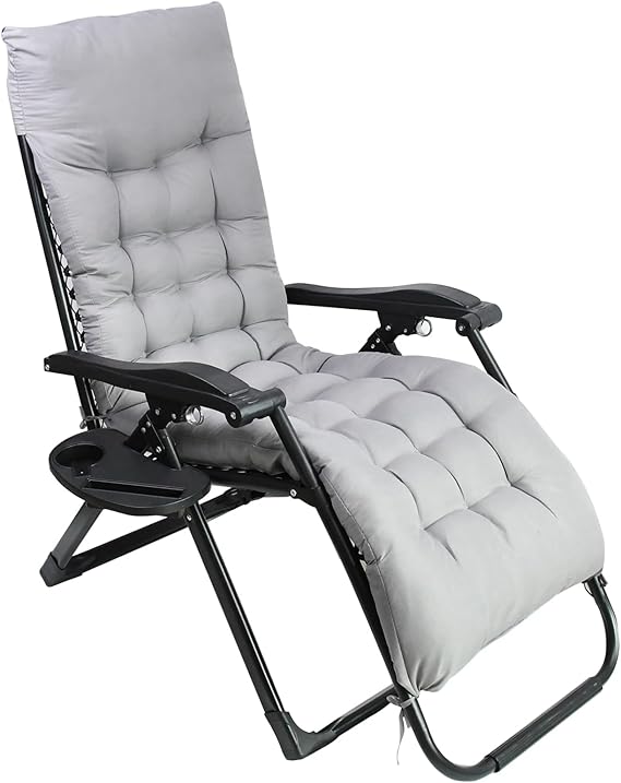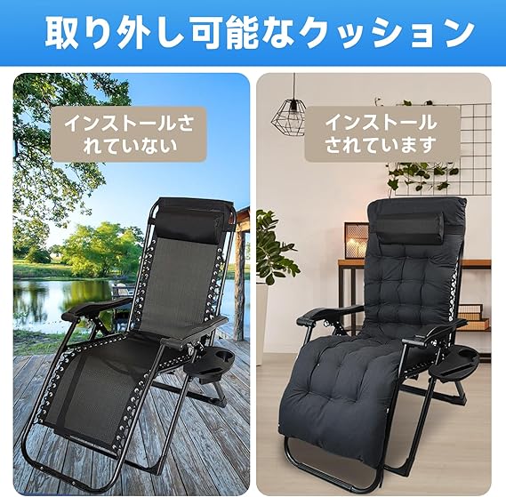 seiyishi リクライニングチェア 折りたたみ アウトドアチェア クッション ゼログラビティーチェア カップホルダー付 一人用 レジャーベッド 軽量 角度調節 昼休み 昼寝 キャンプ レジャー 屋外 (グレー) a