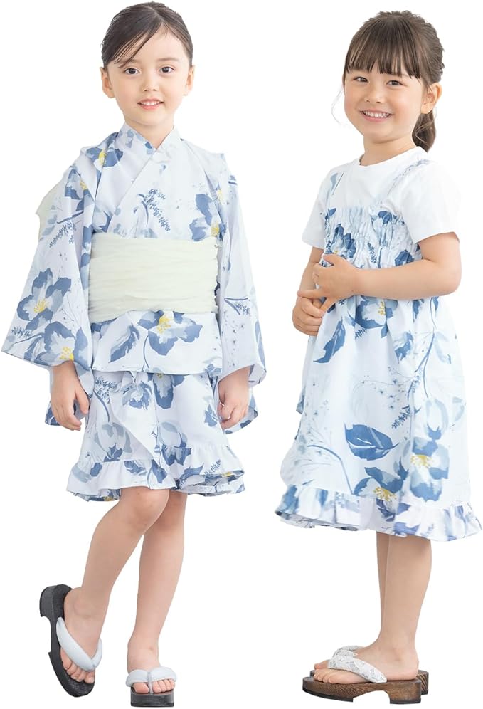 [SOUBIEN] ソウビエン 浴衣 3点 セット セパレート ワンピース floro キッズ (上着/ワンピース/兵児帯) 吸水速乾 CoolPass モダン 花柄 b