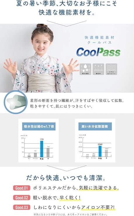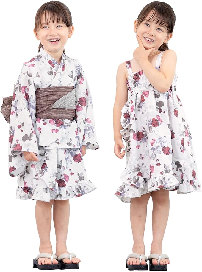 [SOUBIEN] ソウビエン 浴衣 3点 セット セパレート ワンピース floro キッズ (上着/ワンピース/兵児帯) 吸水速乾 CoolPass モダン 花柄 c