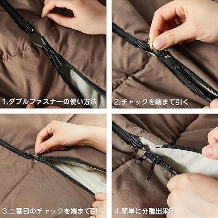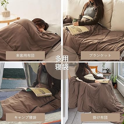 【肌触りが良い】表面生地と内生地:肌触りが良いソフト生地、柔らかくて快適な素材で、いつでも寝袋に入ると暖かい感じがします。中綿:防寒性に優れいた柔らかい中空繊維を使用しています。肌触りが良く、保湿性・吸水性・通気性にも大変優れてい、中綿は空気を