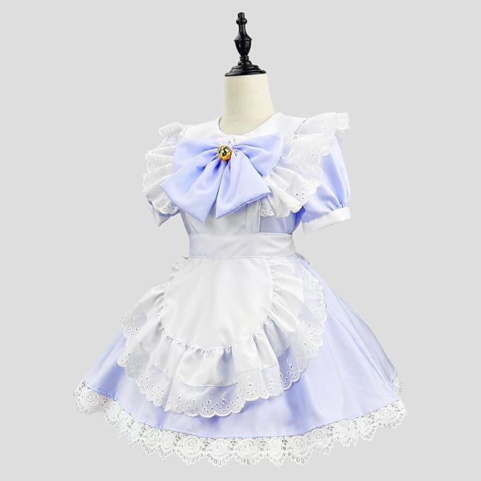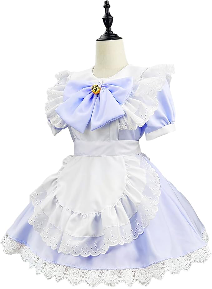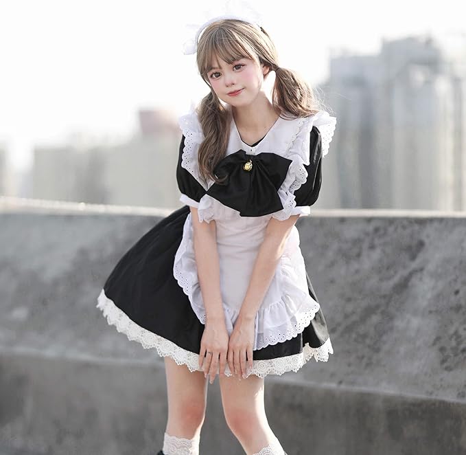 [MEYOIJK] メイド服 コスプレ 萌え コンカフェ メイド 定番 ショート丈 可愛い レース メイドコスチューム 5点セット ロリータ ワンピース レディース メンズ 大きいサイズ 仮装 ハロウィン 女装 人気 学園祭 撮影 a