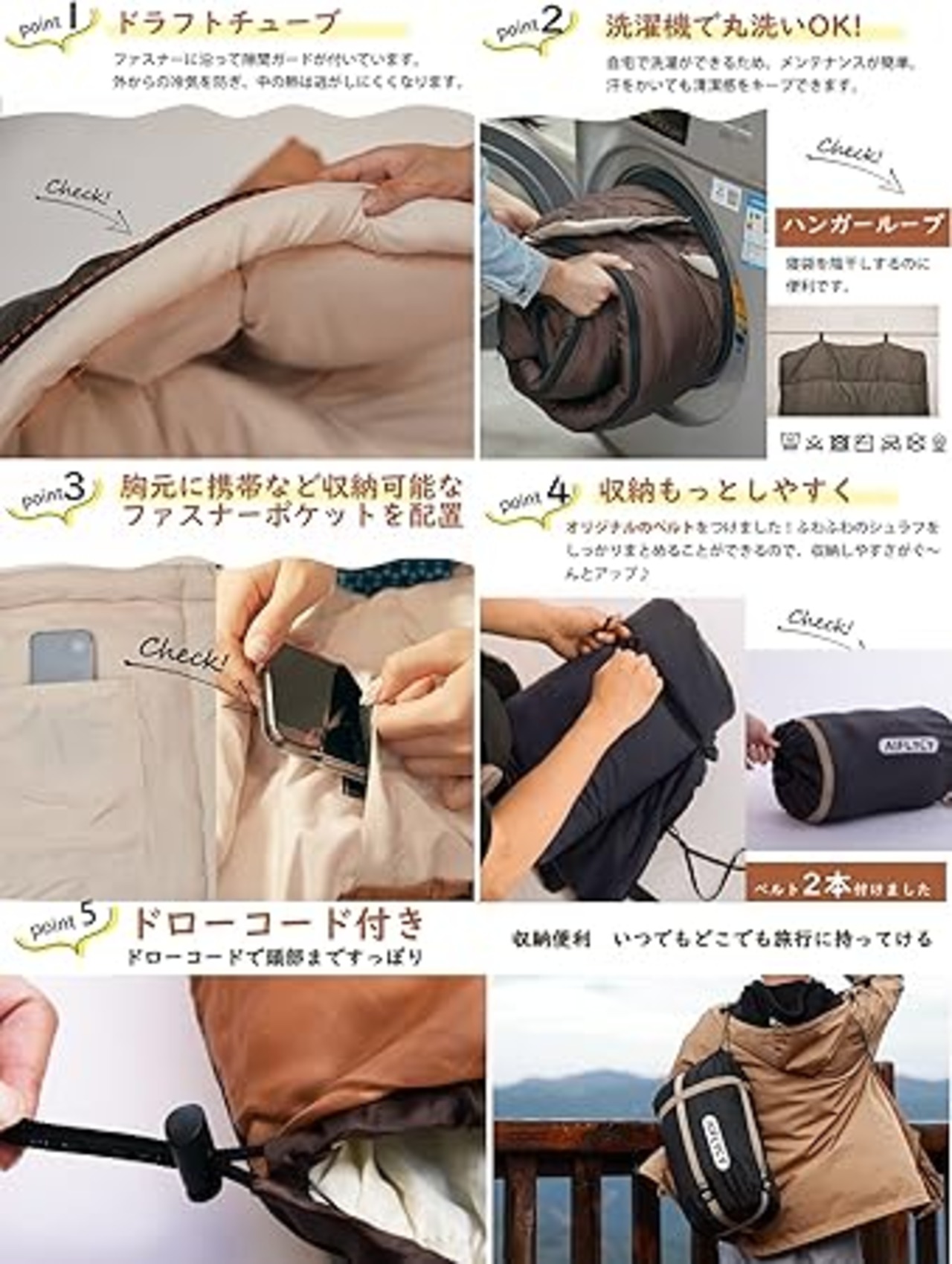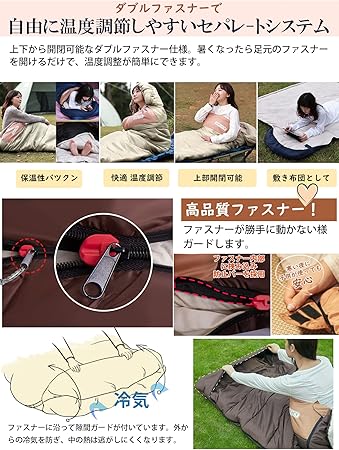 【商品サイズ&品質サービス】使用時:(約)210×82cm; 広げた時:(約)210×160cm; 収納時サイズ:約 35×17cm 重さ:約1.4kg 最低使用温度:-10℃ 快適温度15℃です。100%注意:体感によって体感温度が異なりますので、お客様の体調に合わせて、ご自身にあった重量の寝袋を選ぶことをお勧めしています。また、気温によりブランケットと一緒に使うのもおすすめ致します。重さ:約1.4kgは耐寒範囲:約-10℃ ~ 25℃,重さ:約1.8kgは耐寒範囲:約-15℃ ~ 25℃