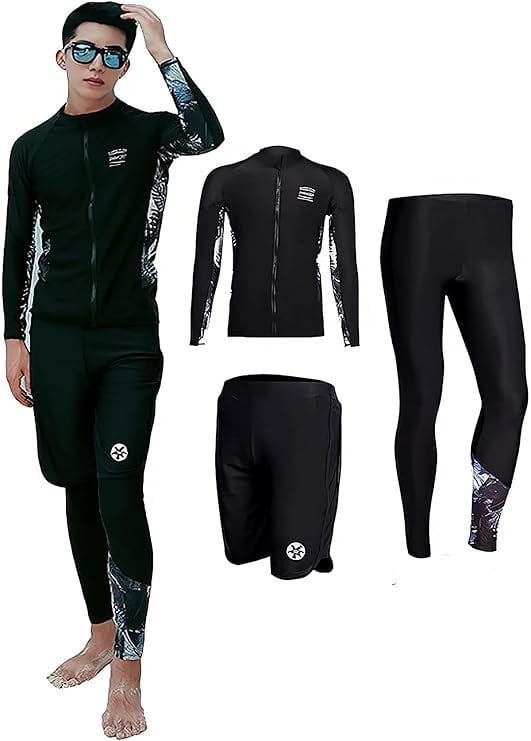 [foveitaa] ラッシュガード メンズ フィットネス水着 上下 セット 長袖 前開き レギンス サーフパンツ フィットネス 男性 3点セットUVカット温泉 ビーチ 水泳 スイミング メンズ 競泳 吸汗 速乾 c