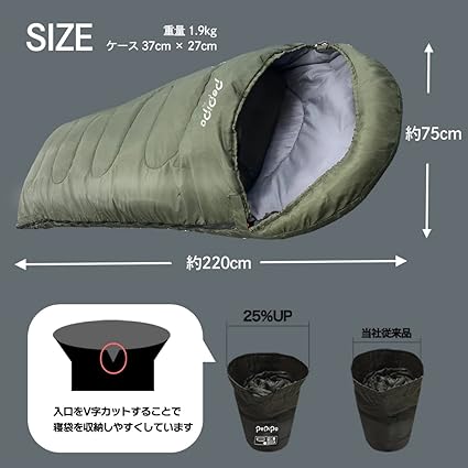 【pepipo】 寝袋 シュラフ 封筒型 人工ダウン 冬用 コンパクト 210T 限界使用温度-10℃ a