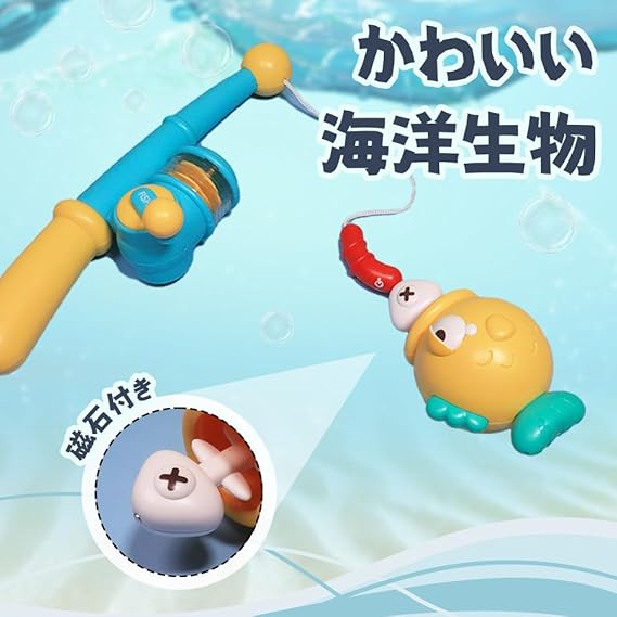 お風呂おもちゃ 魚釣り 水遊び 魚ちゃん 海の生き物 ゲーム 釣り遊びフィッシングゲーム プール 磁気釣り 釣り遊び 男の子 女の子 知育玩具 (釣竿 提灯魚) a