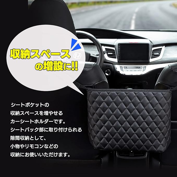 このカーシートホルダーは、シートバックに取り付けることで収納スペースを増やし、車内をすっきり整理するのに役立ちます。シートポケットの隙間を有効活用し、小物やリモコン、ティッシュ、財布などを収納するのに最適です。ドライブ中に必要なアイテムを手の届く範囲に収納できるため、使い勝手が向上します。取り付けは簡単で、ヘッドレストにかける仕様のため、さまざまな車種に対応可能です。