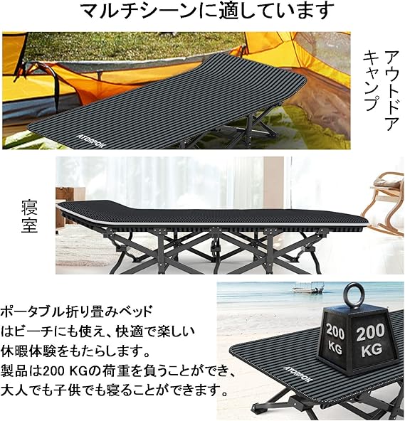 ATORPOK 簡易ベッド コット 折り畳み式ベッド 折りたたみベッド こっと アウトドアベッド 耐荷重200kg キャンプベッド キャンプベッド 防水 通気性 軽量 収納便利 a