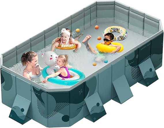 【型崩れしないタイプ】:夏の水遊びを思いっきり遊べる頑丈設計!プールは、複合補強板とPVCで構成されている。PVC複合補強板の生地は最先端の技術で耐摩耗性と防水性が高いため、周囲には複数の三角形の