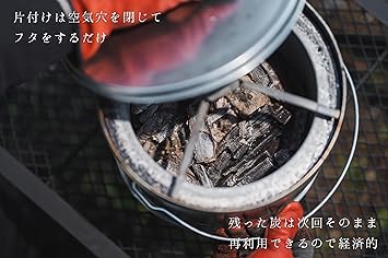 炭を入れて七輪として利用した後は、火消し壺として利用することも可能
