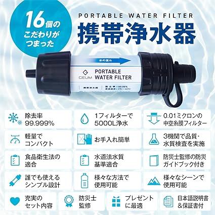 GEUM 防災士監修 携帯浄水器 携帯用浄水器 除去率 99.999% 5000L 浄水器 防災グッズ 収納ケース 軽量 コンパクト アウトドア サバイバル 地震 災害 説明書&防災ガイドブック付き GEUM024 a