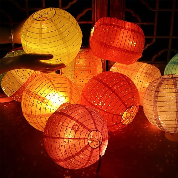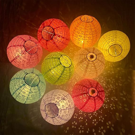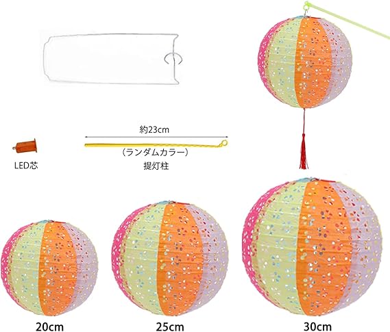 Lanito 紙提灯 お盆 紙ちょうちん 透かし彫り お盆飾り 提灯 LED付き 燈籠 カラフル 10個セット イベント お祭り 居酒屋/誕生日/結婚式/出店/DIY絵画/装飾用 (30cm) a