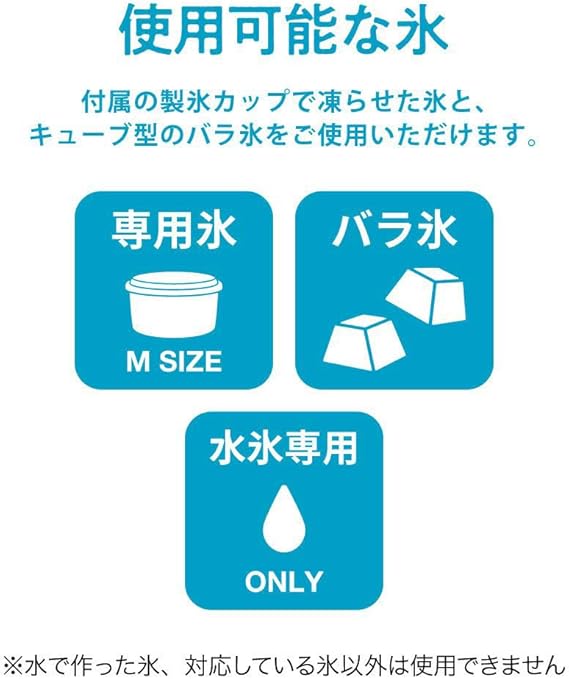 バラ氷OK。付属の製氷カップで作った氷以外に、ご家庭で普段お使いのバラ氷も使用できます。