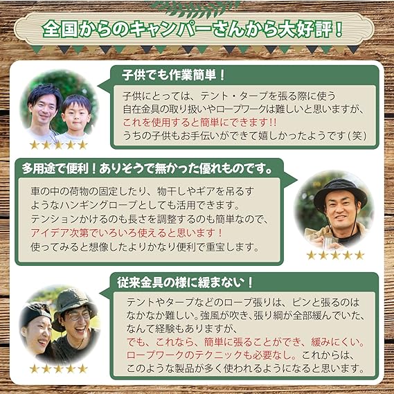 【キャンプ設営の超時短に!】面倒なロープワークが不要!簡単にテントやタープ設営ができます。早くキャンプしたいのに、なかなか設営が終わらない〜!とお悩みの方に是非!