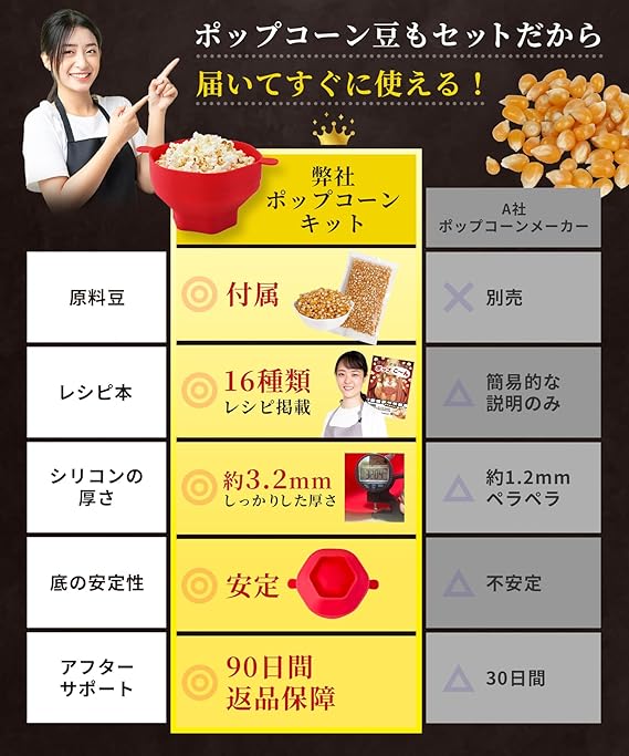 ポップコーン 豆 [ 電子レンジ 用 ポップコーンメーカー 付き ] 種 とうもろこし コーン お菓子作り キット Medichef pmt a