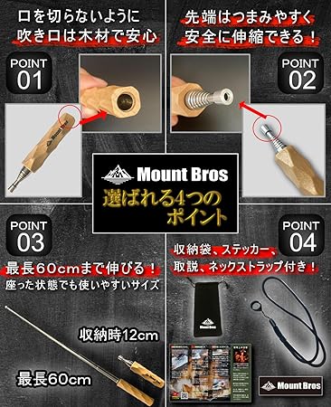 MountBros 火吹き棒 【キャンプのプロ推薦】 ふいご ファイヤーブラスター 伸縮式 コンパクト 半年返品保証 セット a