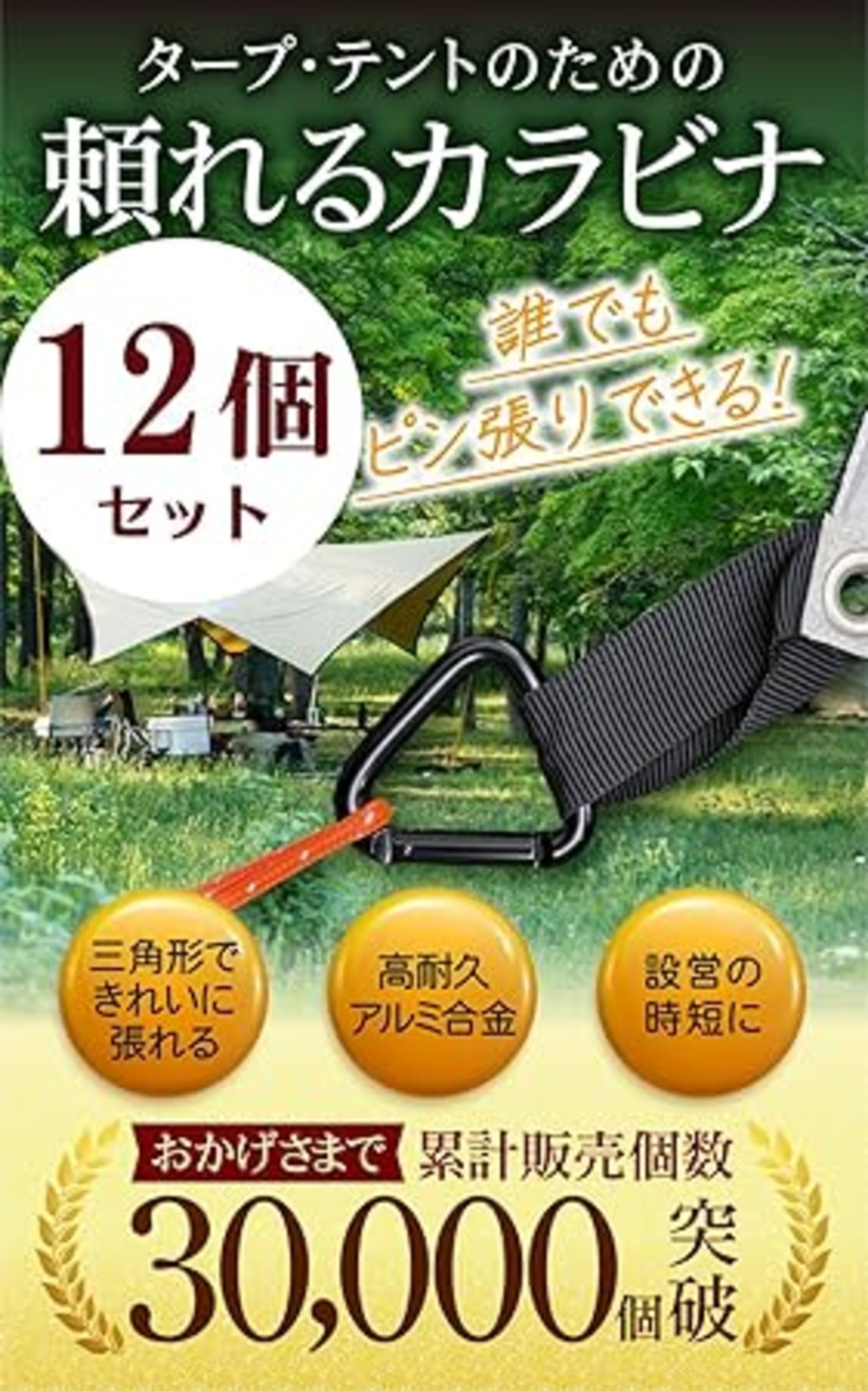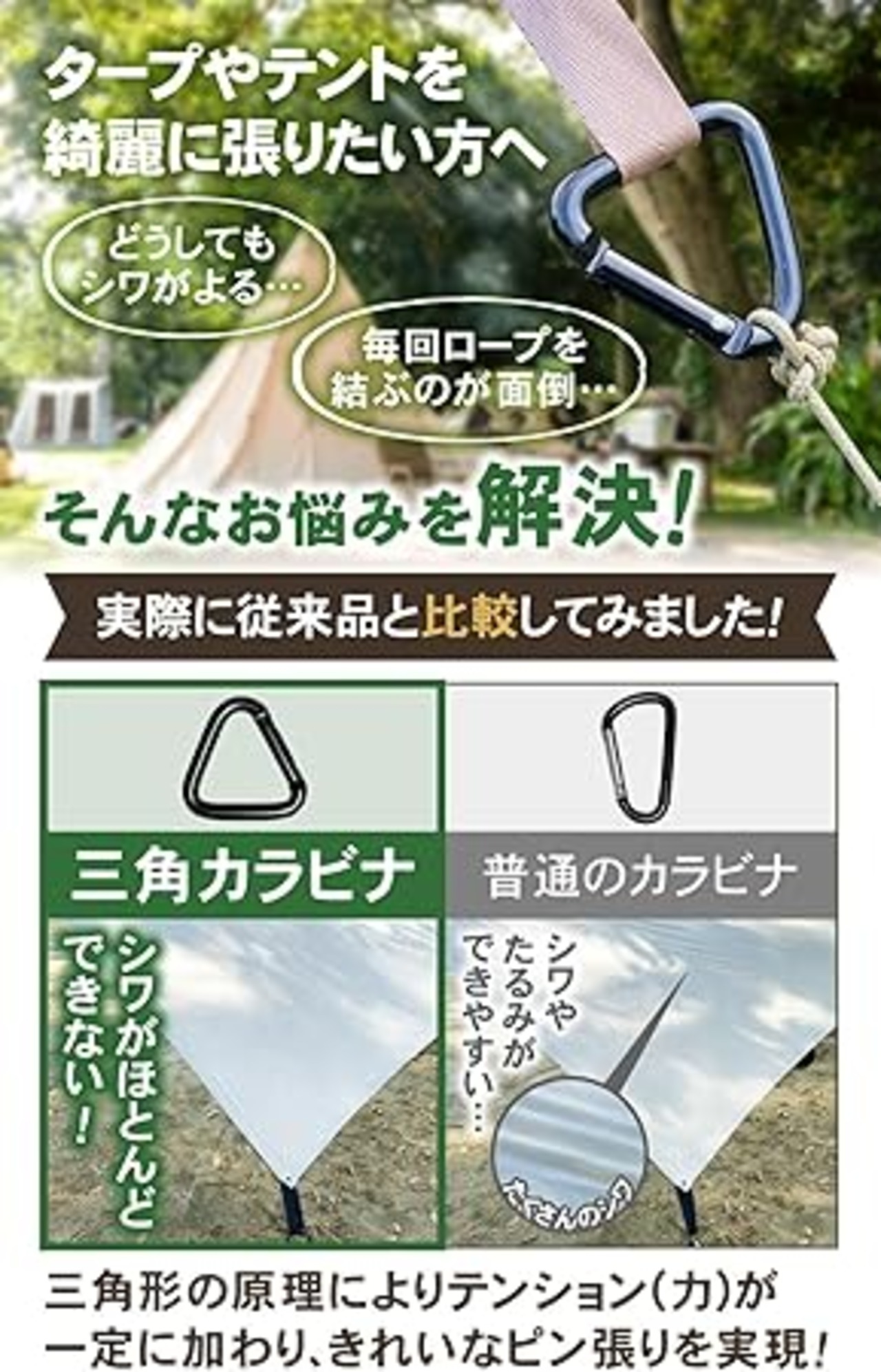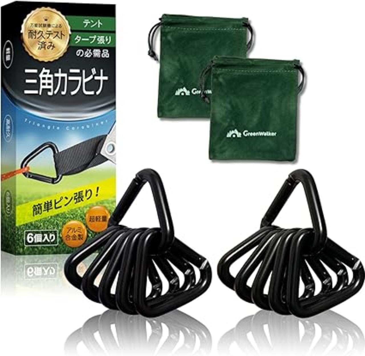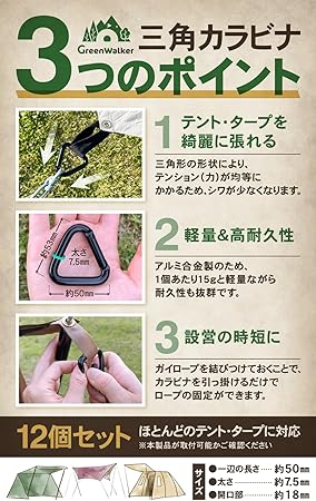 【国内耐久試験済】 GreenWalker 三角カラビナ タープ テント ロープ キャンプ アウトドア a