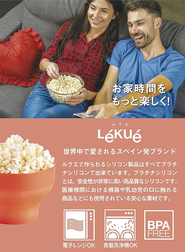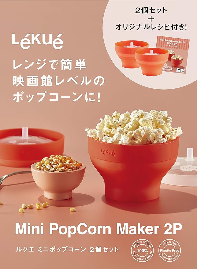 ルクエ (Lekue) ポップコーンメーカー 2個セット 電子レンジ調理 プラチナシリコン製 Lekue 【日本正規販売品】 レッド a