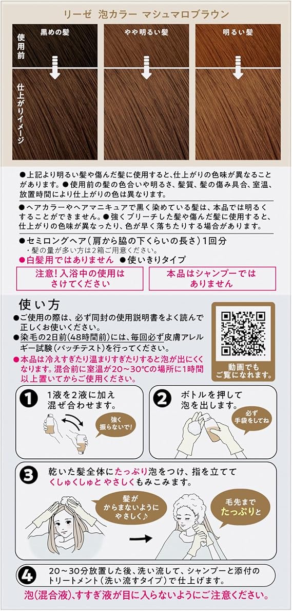 リーゼ 泡カラー マシュマロブラウン 黒髪用ヘアカラー (115ml) ×2個 医薬部外品 +トリートメントサンプル a