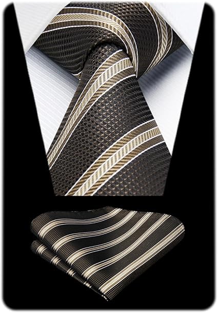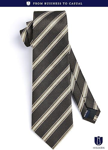 [HISDERN] HC-05 ブランド ネクタイ メンズ チーフ付き 幅8.5cm 高級 イージーケア 洗える ストライプ チェック ドット柄 入学式 就活 卒業式 就職 サラリマン 43柄 a