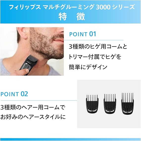 フィリップス ボディ トリマー マルチグルーミング3000シリーズ ボディシェーバー (1台8役 バリカン/ヒゲトリマー/鼻毛カッター) MG3730/15 ブラック a