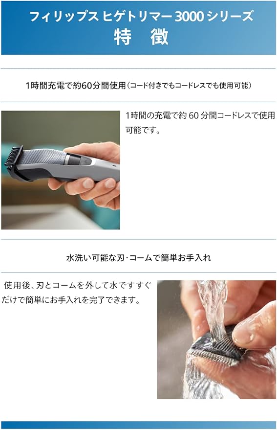 フィリップス ヒゲトリマー3000シリーズ (最小0.5mm幅 20段階設定/充電 交流式) BT3222/14 スペースグレイ/ブラック a