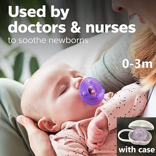【セット品】フィリップス おしゃぶり + ケース(0〜3ヶ月, パープル) + おしゃぶりホルダー a
