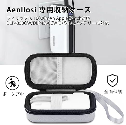 【合理的な保管】Aenllosi 収納ケースはぴったりフィットでコンパクト、Philips 10000mAh DLP4350QW/DLP4350CWモバイルバッテリーのために特別に設計されており、弾性メッシュポケットはフィリップス 10000mAh Apple Watch対応 DLP4350QW/DLP4350CWモバイルバッテリーの付属品などを収納できます。