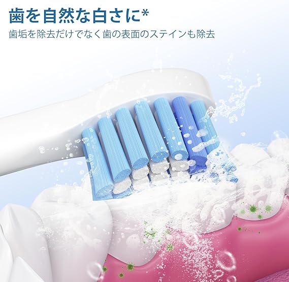 【ミニサイズー効率的に歯垢を除去】Miniサイズで、ブラッシング接触面積を最大化にして、密集した毛先のステイン除去パッドが、表面の10倍の歯垢を簡単に取り除きるだけなく、食べ物や飲み物による歯の表面のステイン(着色汚れ)を除去できます。また、本製品(ソニッケアー 用の替えブラシ)はカーブの毛先の設計により、届きにくい部分をしっかり歯垢を除去、自然な白い歯へ(ミニサイズなので、子供たちもご利用できます)