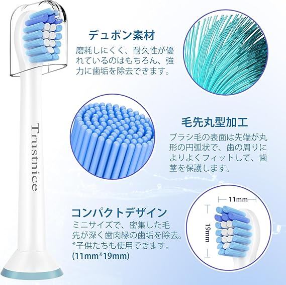 【2025進化モデル ミニサイズ 】Trustnice 替えブラシ フィリップス ソニッケアー 対応 電動歯ブラシ 替えブラシ ミニ コンパクト philips sonicare 用の 互換ブラシ 小さめ 日本人サイズ 8本 a