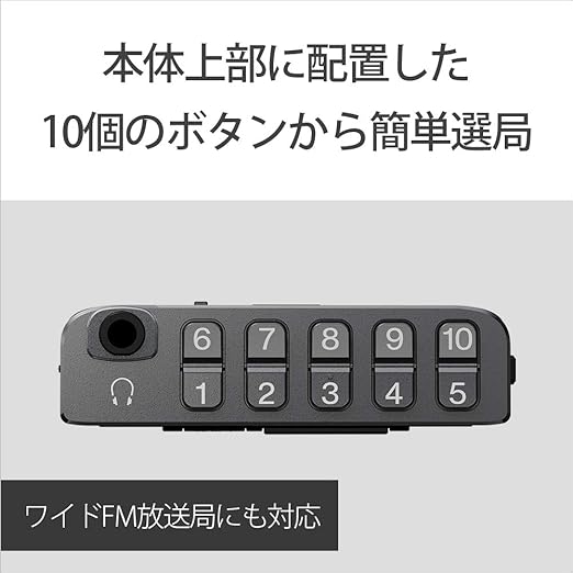 ワイドFM局を登録済。10個の一発選局ボタンエリア