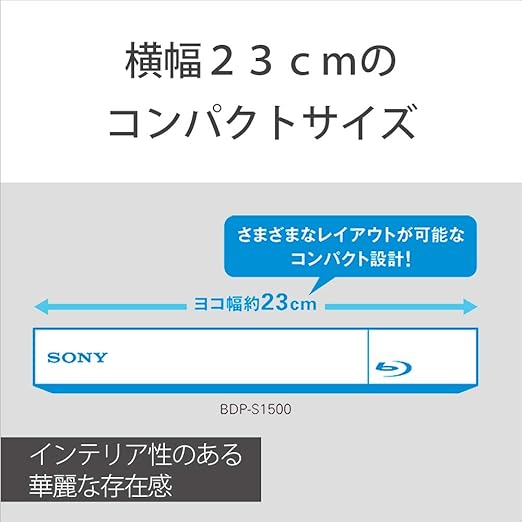 ソニー ブルーレイプレーヤー/DVDプレーヤー コンパクト スタンダードモデル BDP-S1500, ブラック 230mm×39mm×194mm(幅×高さ×奥行き)最大突起含む a