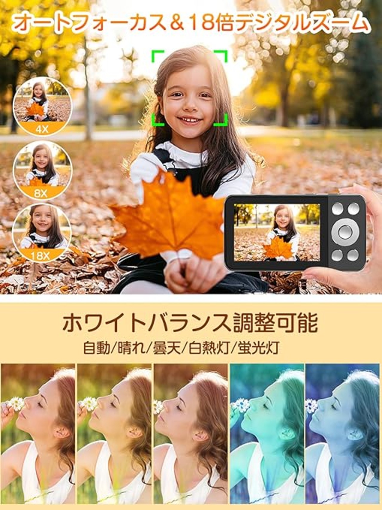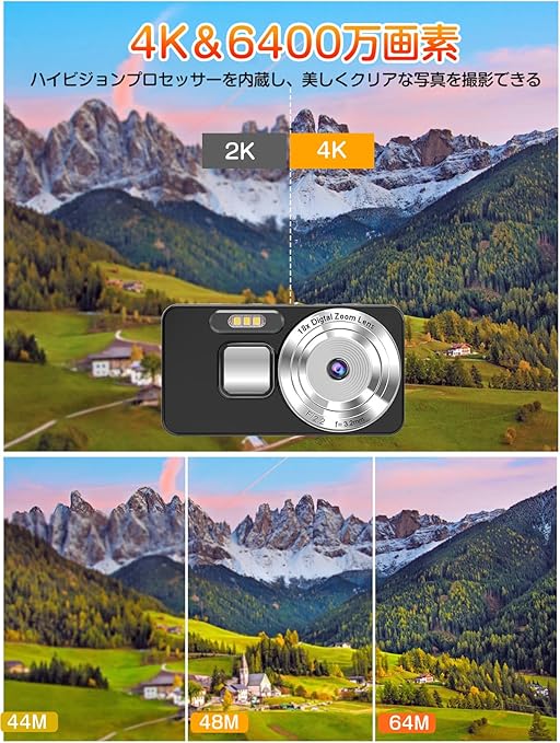 QZT デジタルカメラ 4K デジカメ 6400万画素 タイムプラス録画機能 2.8インチ大画面 オートフォーカス 18倍デジタルズーム セルフタイマー ループ録画 LEDライト USB充電式 コンパクト ウェブカメラ機能 軽量 修学旅行/子供カメラ/初心者/入学式 三脚穴付き 日本語取扱説明書付き 32gカード付属 a