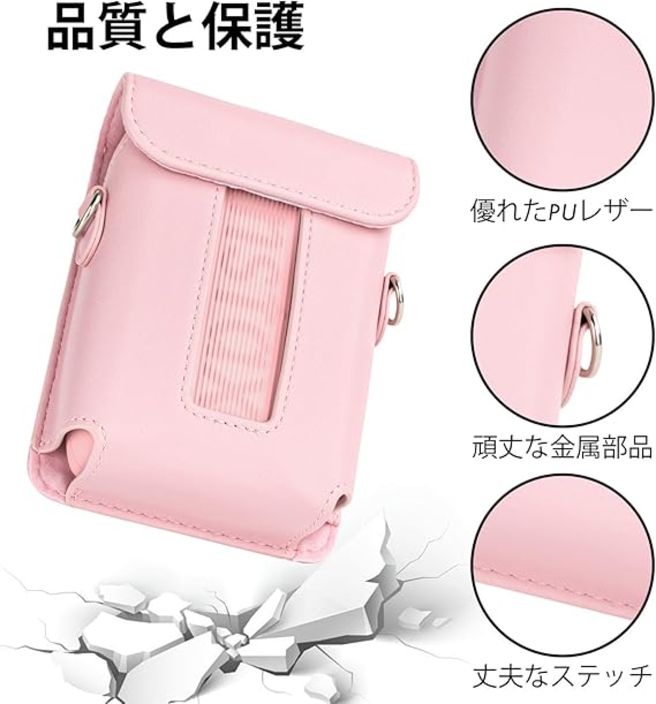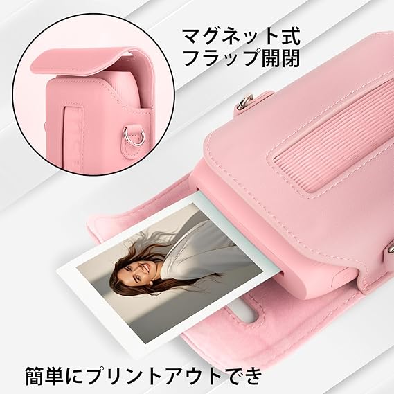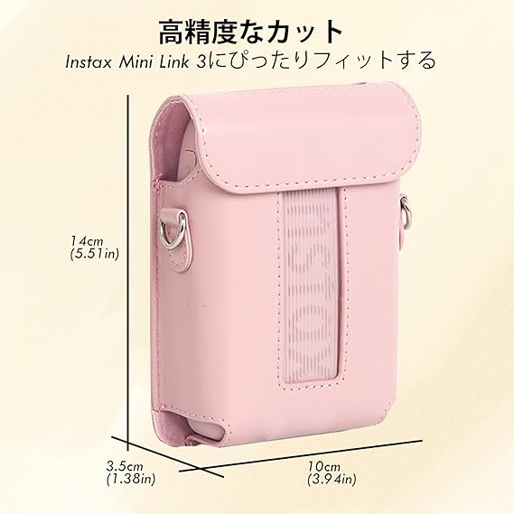 HIYQIN forスマホプリンター ケース、チェキLink3 ケース instax mini Link3 ケース 富士フイルム チェキ スマホプリンター mini Link3 カメラケース ショルダーストラップ付き PUレザー ケースを付けたままプリントでき(ピンク) a