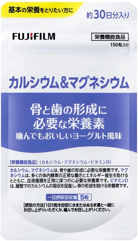 富士フイルム カルシウム&マグネシウム (30日分) 骨と歯の形成に必要な栄養素 (噛んでもおいしいヨーグルト風味) サプリメント ビタミンD [栄養機能食品] a